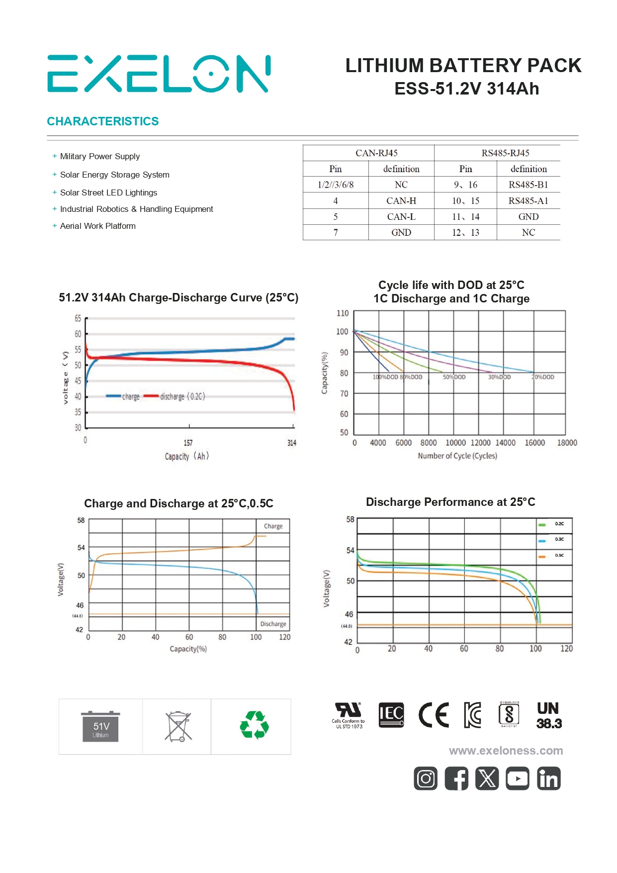 Exelon 51.2 V 314 Ah 16 kW LiFePO4 Lityum Akü