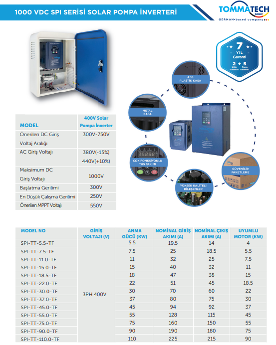 TommaTech 7,5 kW 3 Faz/380V Sulama Pompası İnverteri