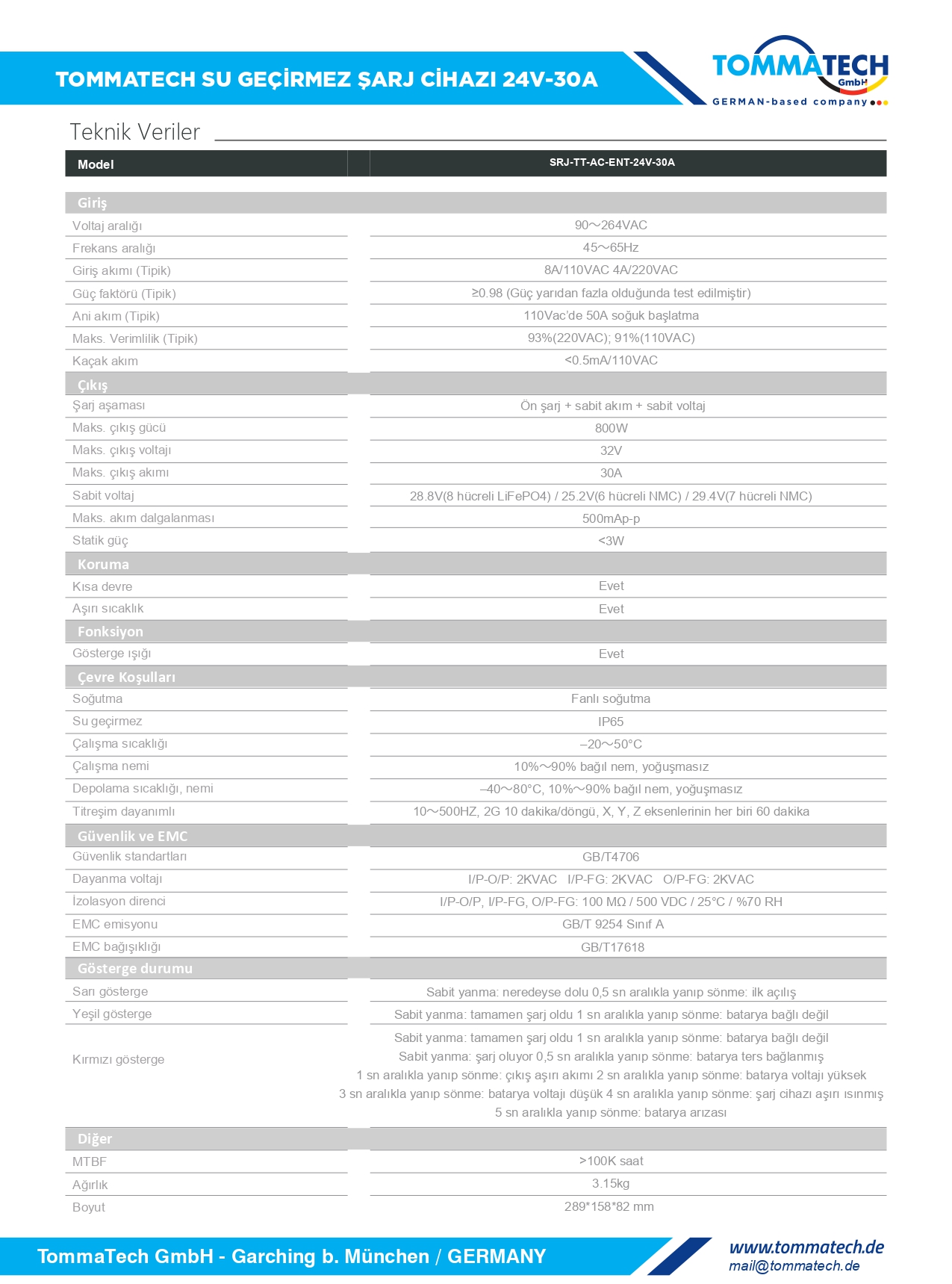 TommaTech Batarya Şarj Ünitesi Entegre 24V-30A