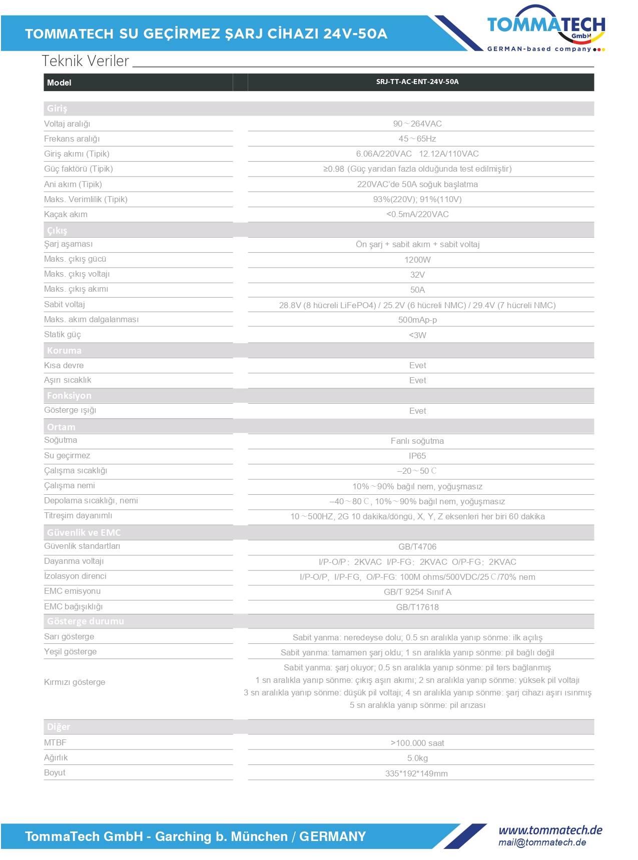 TommaTech Batarya Şarj Ünitesi Entegre 24V-50A