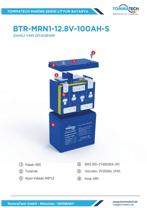 Tommatech Marine 12.8 V 100 Ah LiFePO4 ABS+PC Kasa Lityum Batarya