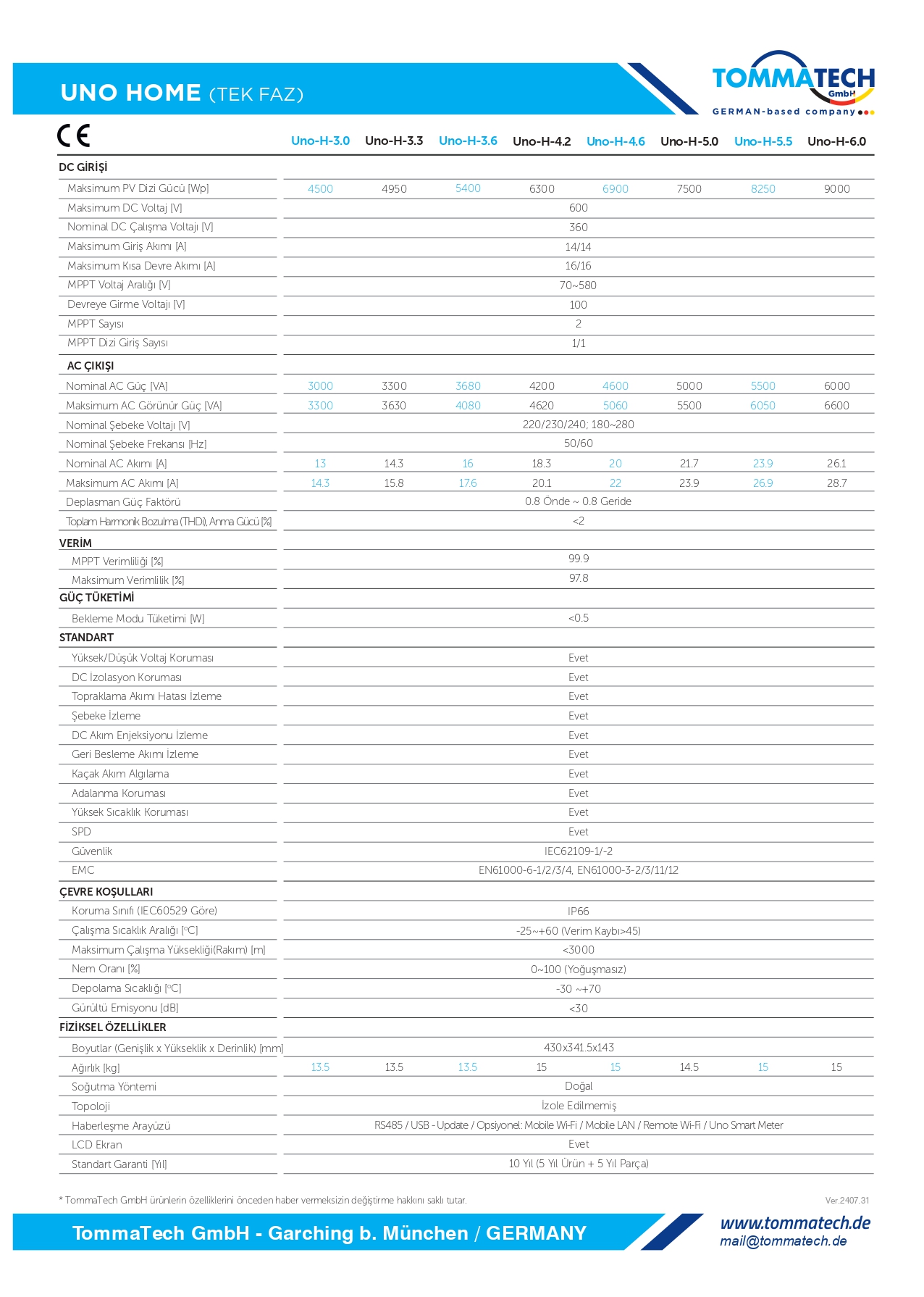TommaTech Uno Home 5.0kW Tek Faz İnverter