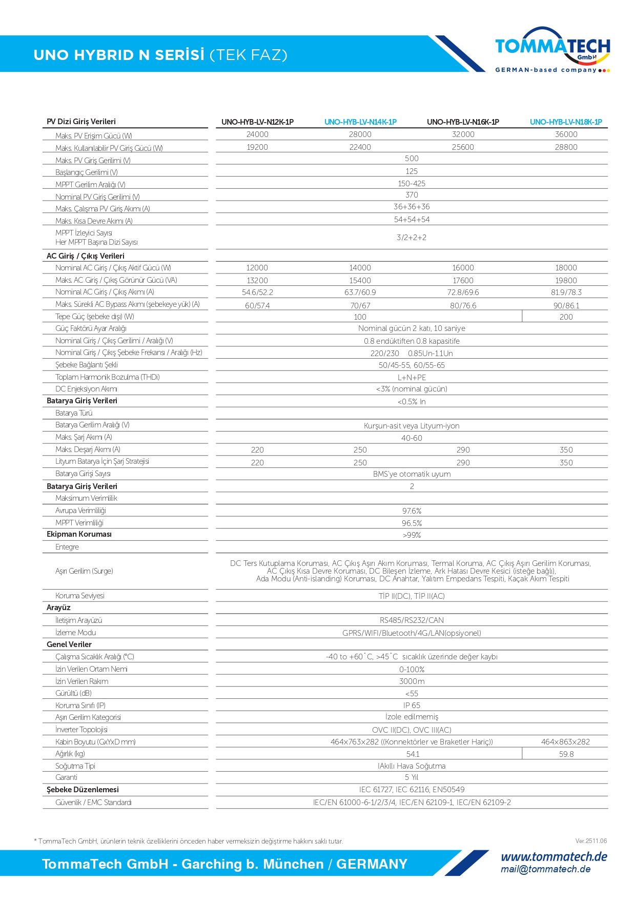 Tommatech Uno Hybrid N 16 kW LV 48V Monofaze İnverter